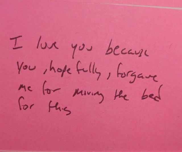 Ez különösen akkor van így, ha egy férje 7 000 Post-Ital átfedte az egész szobáját írásos megjegyzésekkel arról, hogy milyen dolgokat szerett feleségéről, Jennifer Brinley-ről.