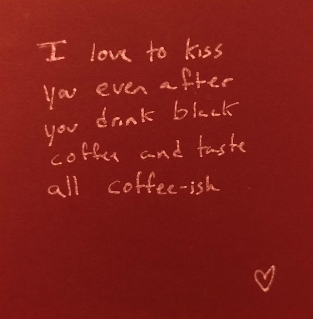 A legjobb ajándék, amit valaha adtam, egy régi, ráncos jegyet kapott a “One Ticket To Kiss Town, népesség: a szájnyílások” szavakkal.