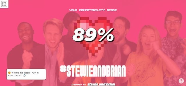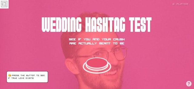 “A Fekete Tuxnál már könnyebb volt megtalálni az álmaid esküvői türelmét, így egy lépéssel tovább mentünk és szórakoztunk az esküvői hashtag jelenséggel, amelyet ma a közösségi médiában látsz” – mondja Matt Gierl , A Growth VP a The Black Tux-ban. “Az emberek megőrülhetnek az esküvői hashtagjaikkal szemben, úgyhogy úgy gondolhattuk, hogy egy kicsit lángoljuk a lángokat azzal, hogy megteremtjük az interneten alapuló kompatibilitási tesztet.”